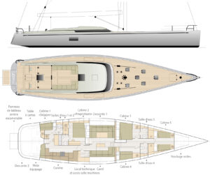 | Sail Wardrobe | North 3di fully battened mainsail, furling J2 and J3.5, furling staysail on removable cable, code zero, A2 and A3 |